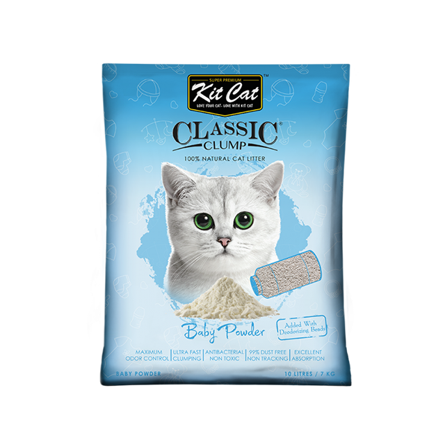 Kit Cat Clumping Baby Powder 7kg is the ideal cat litter for cat parents seeking freshness, hygiene, and convenience. Formulated by cat lovers, this premium litter features superior odor control, fast clumping, and 99% dust-free action, keeping your home clean and your cat comfortable. Enhanced with deodorizing beads and antibacterial properties, it ensures a fresh, hygienic litter box experience every day. Its non-toxic formula makes it safe for both pets and humans, while ultra-fast clumping allows for quick, effortless cleaning.